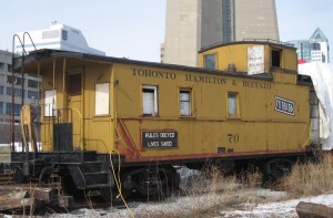 “This steel-sheathed, woodside caboose was constructed in 1921 by the TH&B Railway in its Aberdeen (Hamilton) shops using some components from caboose #51 acquired in 1907 from the Michigan Central Railroad Its present appearance came about in the 1950’s when steel sheathing was added. Around 1954-1955 it received the yellow paint scheme already being applied to their boxcars since early 1952. The TH&B chose yellow and black from the colours of the Tiger Cats football team in Hamilton. …….. Click Here for more information ….”