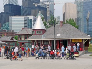 Continuing our series on the very successful Season Opening weekend for the Toronto Railway Museum, we turn to Don Station where the station operators area now display a number of artefacts typical of the operations there a few decades ago. The station also featured a display about Don Station and the history of the development of the Toronto Railway Museum. It is now set up to sell tickets for the miniature train rides through one of the windows fronting on the tracks. Finally, it also now has the station’s name showing on the roof as it was many years ago.