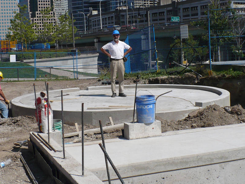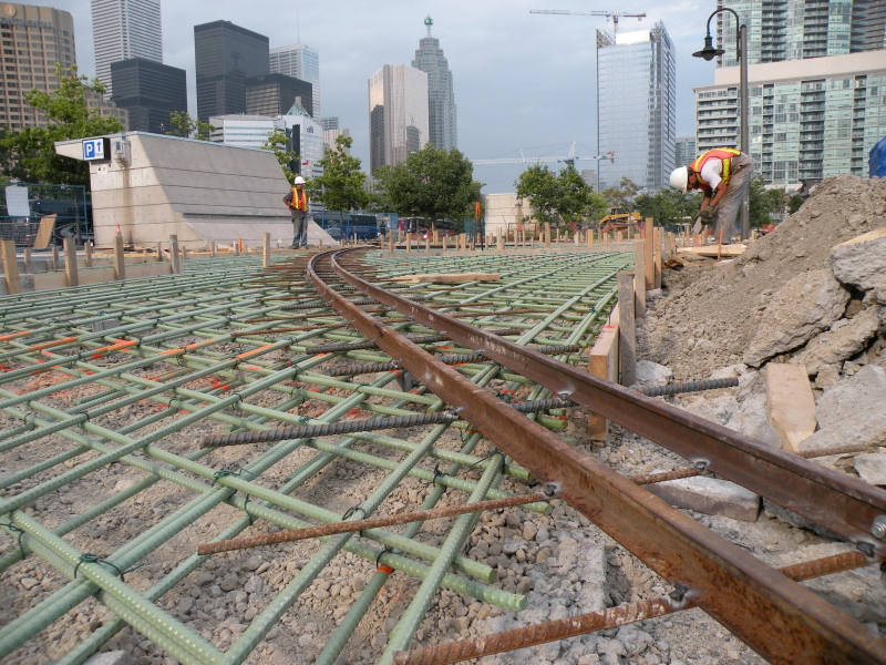 circuit of the miniature railway. In this final section, shown in the pictures above by Michael Guy, some seventy feet of track was required to run diagonally across the mid-park roadway. The metal work is now complete and awaits the concrete pour scheduled for today and Monday.