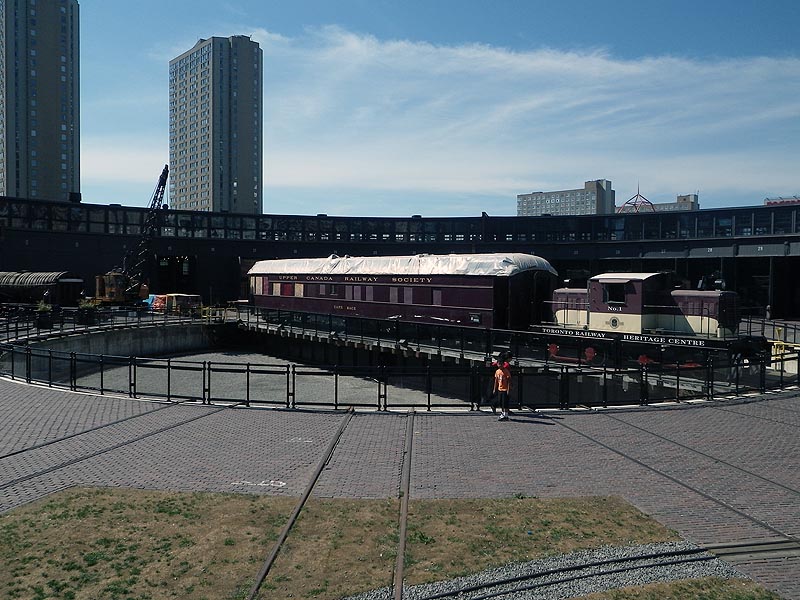 “From 10a.m. (Saturday) we closed up locomotive #1 as planned and began moving equipment. GP9 #4803 was placed in the park on track 39 south, Cape Race was moved out onto the turntable (and later back in) and the Pyke Crane was placed finally on the turntable as a display piece for the weekend. All this activity was avidly watched by the several hundred people in the park at any given time.