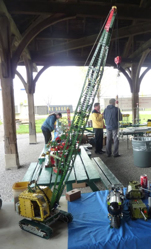 The “Trains, Boats and Meccano” weekend was quite a success at the Hamilton Museum of Science and Technology despite inclement weather throughout the last weekend. The rain held off for most of Saturday allowing all of us to display and operate our models outdoors. However on Sunday a cold snap plus a foggy misty rain drove the Meccano and boat displays indoors. The miniature railway operations ceased around lunchtime due to the cold, rain and lack of brave souls willing to ride..