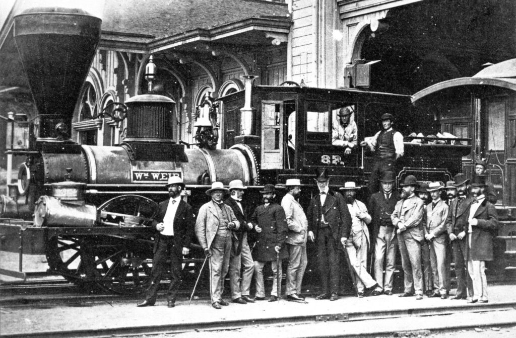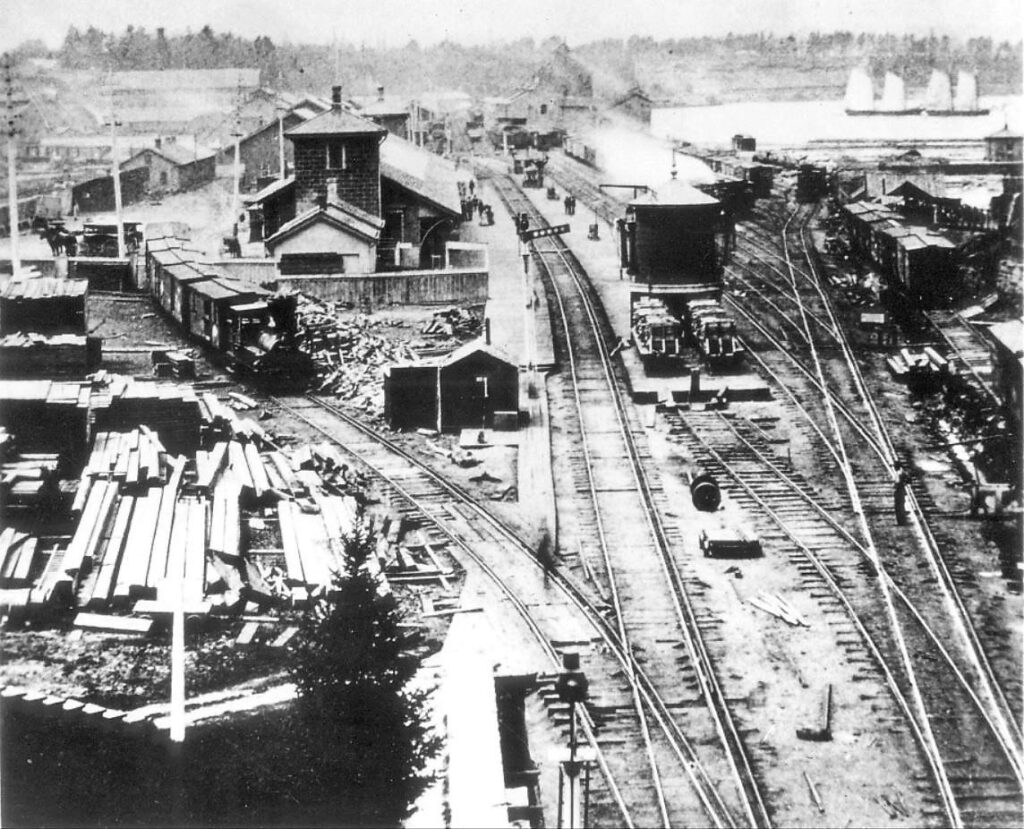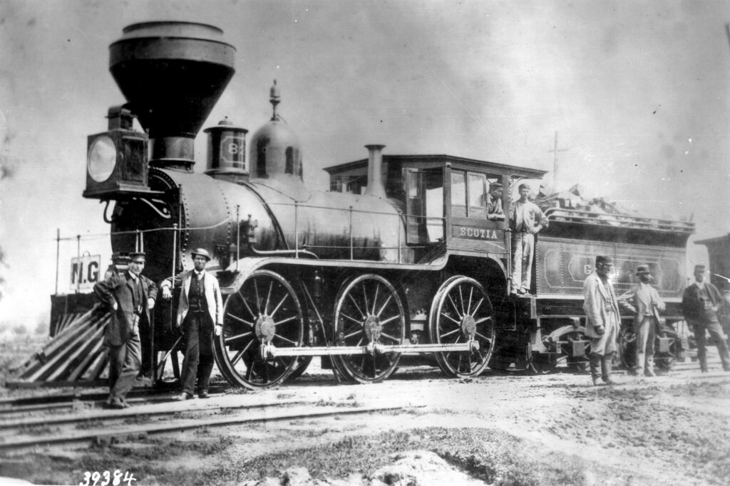 Repair shops were constructed in 1853 on 40 acres of land adjacent to the rail yards in Hamilton to keep the railway’s ever-growing fleet of locomotives and rolling stock in good condition. These sprawling facilities were also capable of constructing their own locomotives, which they did on several occasions due to a lack of local manufacturers. However, much of the Great Western’s early fleet were built in the northeastern United States or shipped overseas from Britain. By the end of 1856, the railway had a total of 86 locomotives and 1,786 pieces of rolling stock. In November 1858, the Hamilton Shops were responsible for constructing Canada’s first sleeping car for overnight trains. In 1861, they were also responsible for building locomotive no. 82, “Scotia”, which was the first locomotive in Canada equipped with a steel boiler. This enabled the use of coal as a source of fuel instead of cordwood, which had been the most common fuel in steam locomotives up to that point.