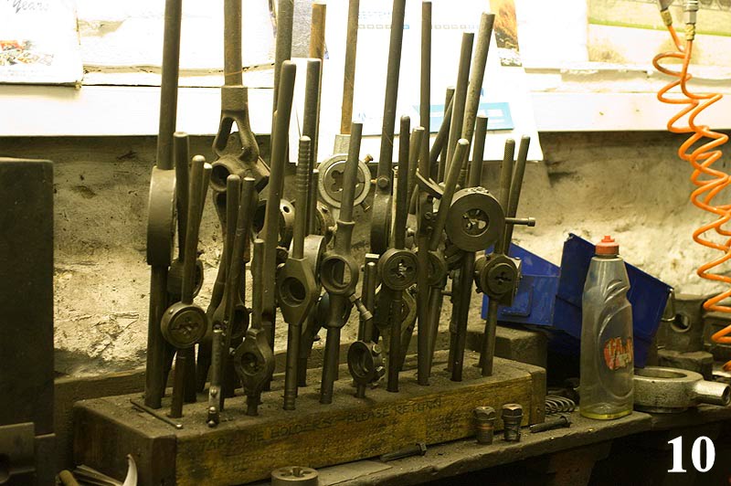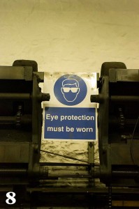 The back of the shop has a full machine shop, with a wide array of lathes, boring, milling machines, and a full wheel lathe, capable of turning the wheels of a locomotive driver back to true from the wear and tear of regular use. Also seen, was a very similar eye protection sign to those found in the Machine Shop at John Street, and re-created in the stalls by TRHA Volunteers, though it must be said that the UK version has more stylish hair than the John Street Eye Protection sign!!