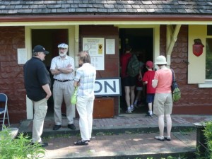 In the picture at left, we see visitors enjoying the displays at Don Station at Todmorden Mills on Canada Day. This is the third year that the TRHA has interpreted the station at Todmorden on July 1. In the middle picture, TRHA President Orin Krivel engages with some of the many visitors who came to visit Don Station.