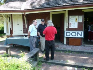 In the picture at the right, John Mellow and Orin Krivel chat with a visitor on Canada Day. John was a Canadian Pacific operator who worked at Don when the station was at its original location in the mid-1960s. John will be a key player in helping the TRHA interpret the station once it’s moved to Roundhouse Park.