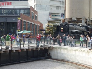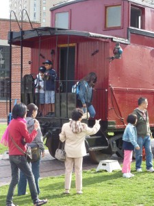 Despite the onset of cooler fall weather we had another great weekend with a fine turnout of visitors enjoying Roundhouse Park. Early on Sunday, our volunteers moved a number of our engines and rolling stock to new locations in the park in order to position them properly per the plan for the night time photo which we announced in a an earlier TRHA News posting. The attached images of visitors enjoying the train and turntable rides also show some of the new visual perspectives which resulted.