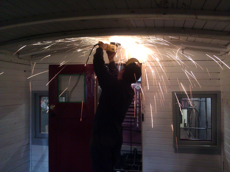 | Grinding off the old paint from metal surfaces |