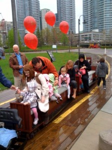 This past weekend saw lots of activity in Roundhouse Park as the Railway Children Production held an open house for the public on both Saturday and Sunday mornings. In the photos above, we find those attending the open house riding the trains despite the inclement weather.