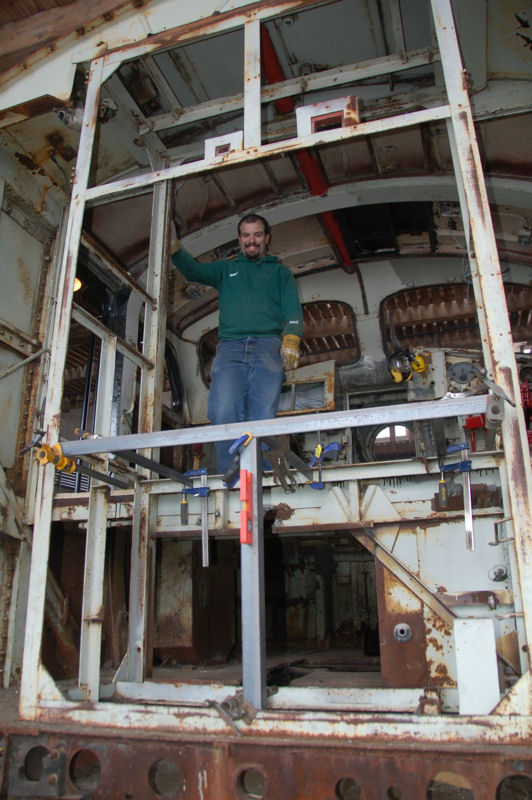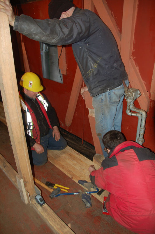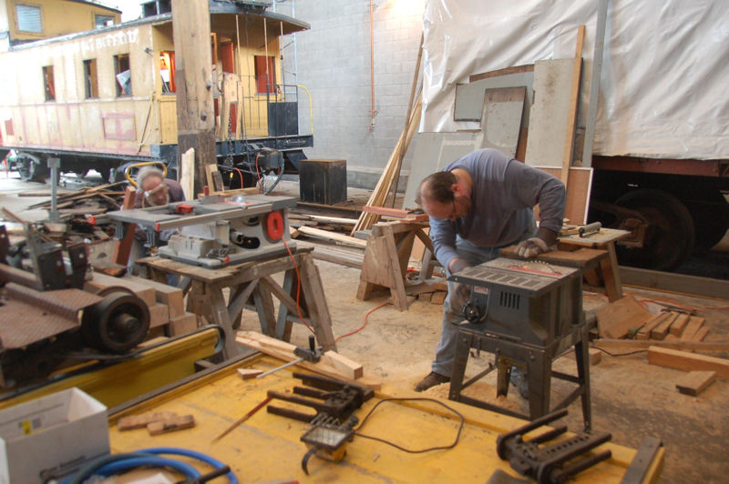 One of our two crews continued to work on the restoration of the interior of the caboose. We got the sills cut for the windows and the new flooring laid up to the floor sill. We also continued to strip the doors down in preparation for new paint and reinstallation.