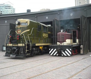 Lots of activity today at the roundhouse and lots of public wandering through and watching the performance as we shuffled cars and locomotives for a photo shoot by Norm Betts, a professional photographer who has been documenting progress of the development of Roundhouse Park for some time. We actually hit an all-time record high for volunteers on site at one time. There were eighteen of us engaged in various projects.