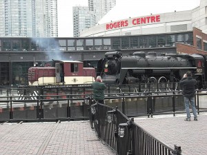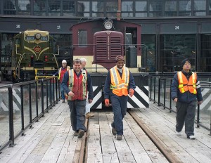Lots of activity today at the roundhouse and lots of public wandering through and watching the performance as we shuffled cars and locomotives for a photo shoot by Norm Betts, a professional photographer who has been documenting progress of the development of Roundhouse Park for some time. We actually hit an all-time record high for volunteers on site at one time. There were eighteen of us engaged in various projects.