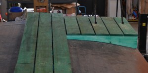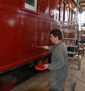 The exterior work on the right side of the car is thus all but completed. We anticipate being able to turn the caboose around next weekend to proceed with work on the left side.