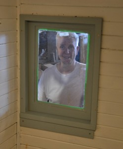 Restoration work on the TH&B caboose continued with significant progress to report from this Saturday’s work session. The window work is satisfyingly close to completion, with just some painting and mounting to go. Black trim paint was applied on the right side and to the cupola, followed by a second coat of the final exterior red. The rear roof walk is now about 80% complete, with boards for the ladder platform still left to do. The ladder platform for the main roof walk has been finished.