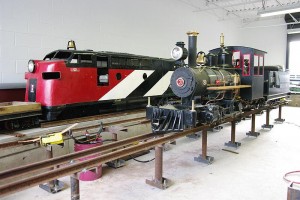 We did all of this is to allow some deferred maintenance to occur on #4803 from the comfort of the work platform while still keeping the roundhouse floor reasonably clear for the electrical installation work which is still ongoing. After lunch, work continued inside the museum on the Pyke Crane, the F7 cab and the caboose. Work also continued in the miniature railway depot. By day’s end the elevated track #4 was complete and a level deficiency in the lead track had been improved significantly. To cap the day we moved Sweet Creek into its new home in the depot for the first time.