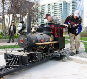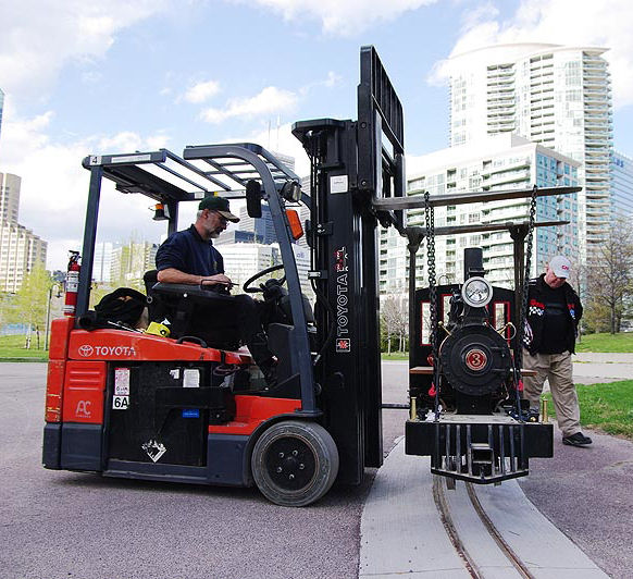 Sunday also dawned sunny as well. There were lots of people in Roundhouse Park so we had an audience for our planned equipment shuffle this morning using a smaller team of eight volunteers. We started by shuffling the equipment as follows: