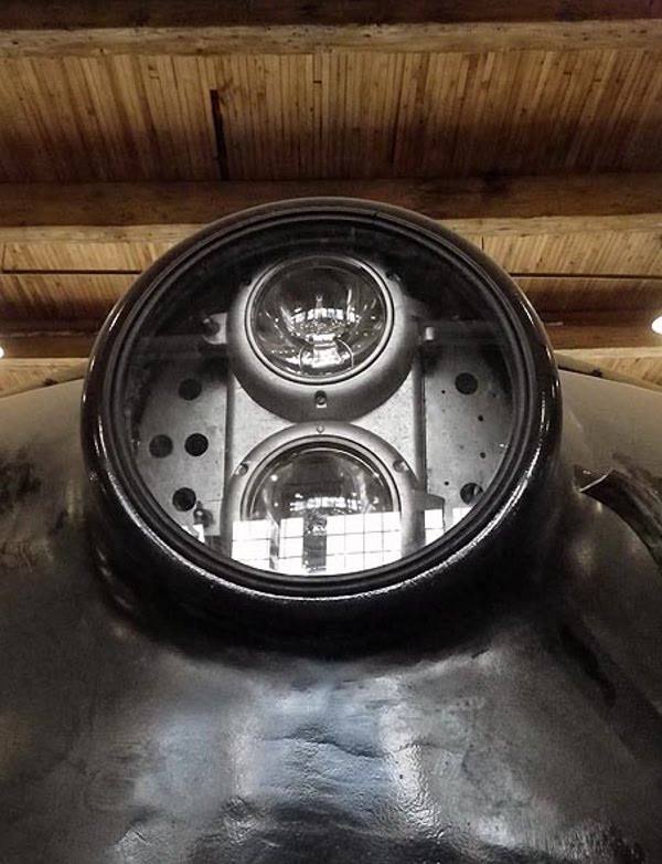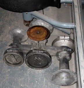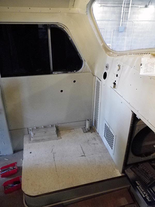 Barry Silverthorn donated the F7 Cab to the museum several years ago. Last week he generously offered us the F7 air horns and the F7 headlight assembly on a long term loan thereby giving us the opportunity to add sight and sound to our F7 Cab. These are shown in the photos above along with the newly re-panelled side of the F7 Cab.