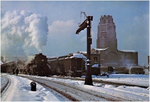Christmas is that time of the year when the railways work very hard to ensure that their passengers arrive safely home to their families to celebrate the holiday. Nowhere is that job more challenging than in Buffalo, New York, only 50 miles south of Toronto as the crow flies, but often another world given the paralyzing lake effect snow storms that the city often experiences. This photograph by famed New York Central Railroad photographer Ed Nowak shows the NYC’s Buffalo Central Terminal in the aftermath of one of those storms.